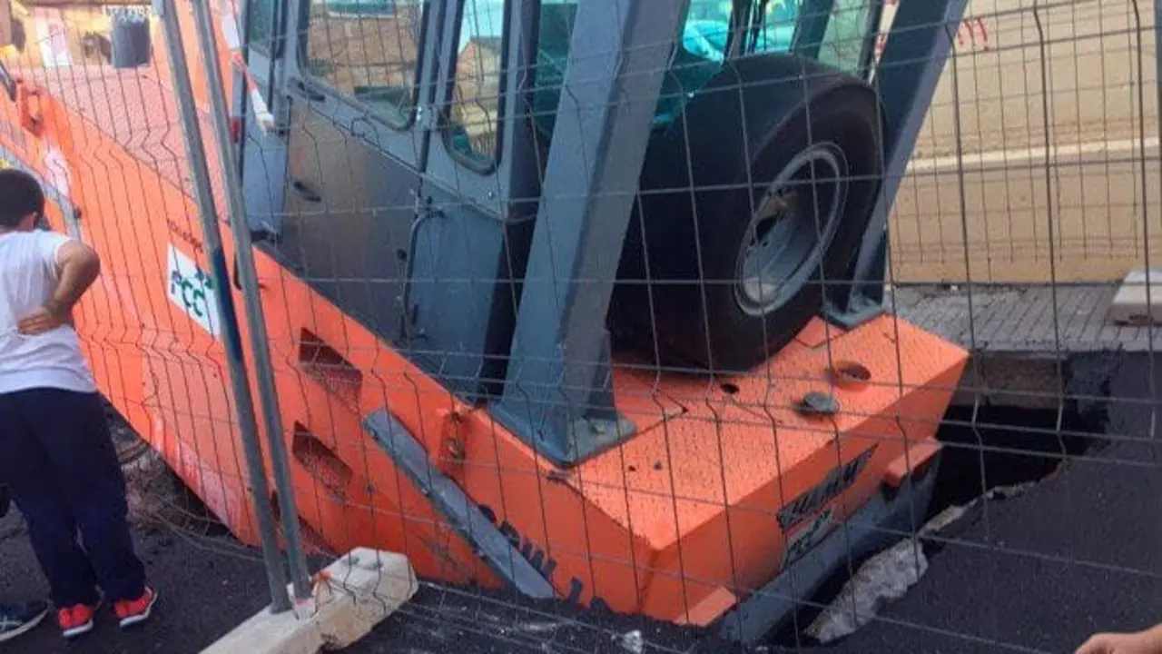 Un socavón se traga una apisonadora de 20 toneladas en Torrejón del Rey Afortunadamente el conductor resultó ileso. Redacción MiraCorredor 07/10/19