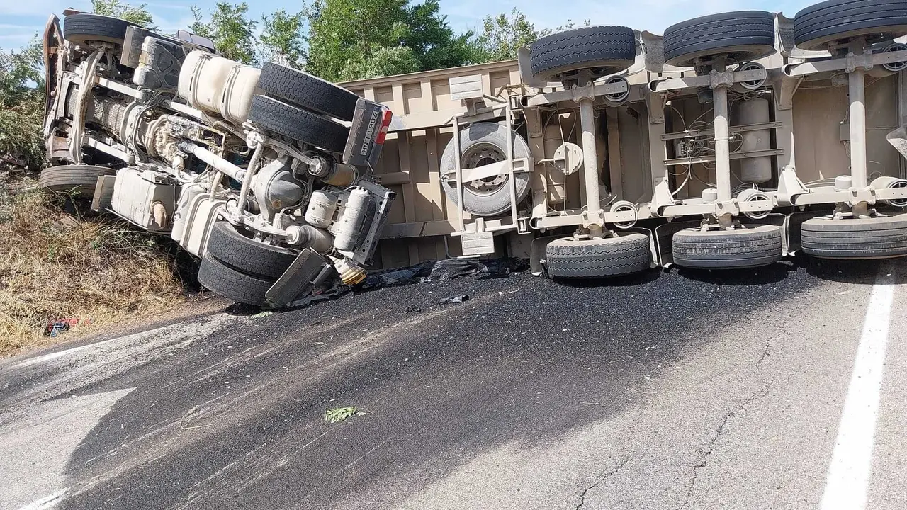 Guadalajara: Aparatoso vuelco de un camión que transportaba grava en la CM-110 El accidente ha obligado a cortar la carretera a la altura de Sigüenza. Redacción MiraCorredor 01/09/23