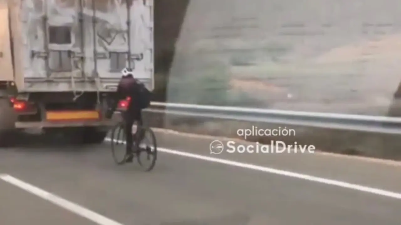 El vídeo viral de un ciclista circulando por la A2 pegado a la parte trasera de un camión Fue grabado a la altura de Guadalajara. Redacción MiraCorredor 23/12/22