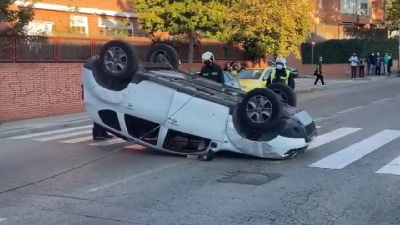 Herida leve tras volcar su coche en Mejorada del Campo Tras impactar contra otro vehículo estacionado. Redacción MiraCorredor 12/10/21