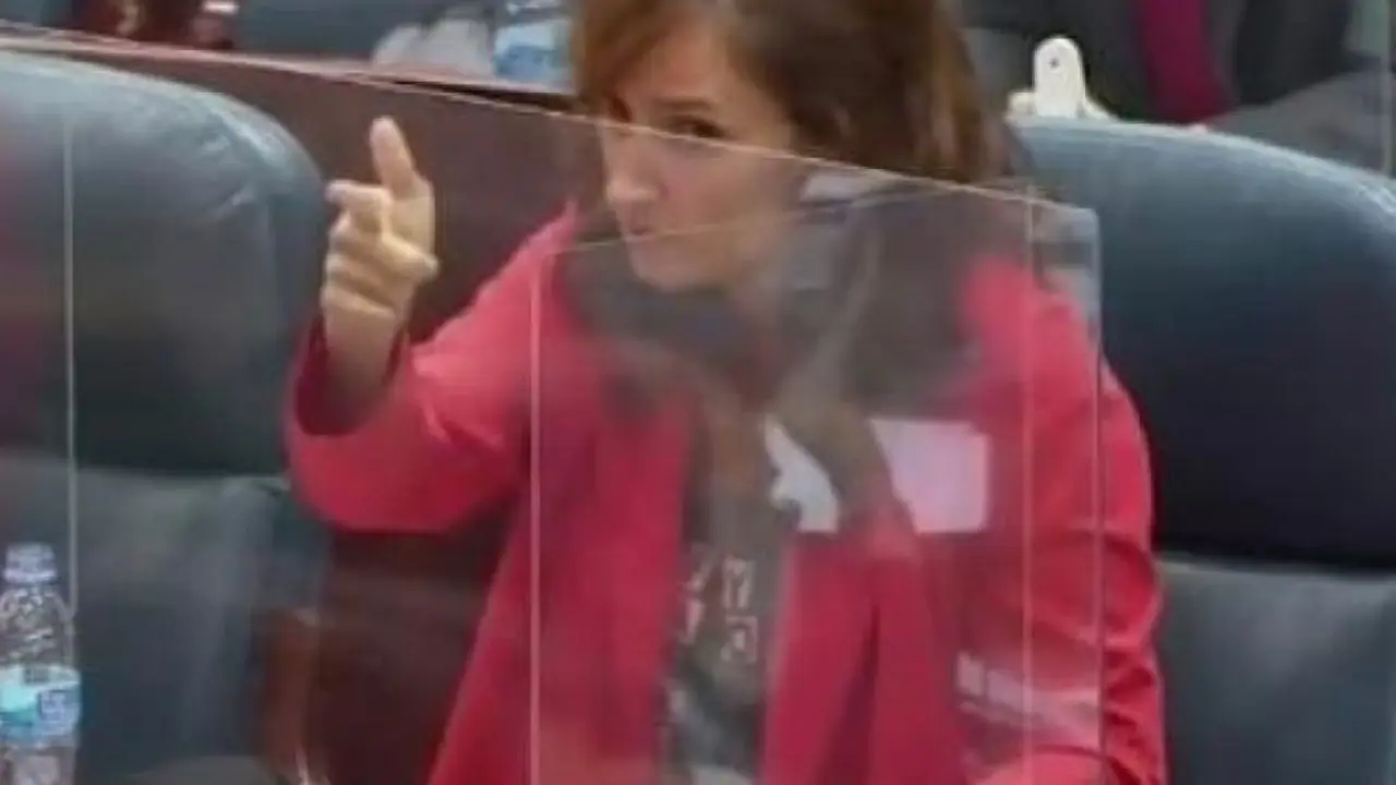 Una diputada de Más Madrid «dispara» a un consejero de Ayuso en la Asamblea La diputada achaca el gesto a que estaba imitando el que le hacía el portavoz del PP y a la artrosis de su pulgar. Redacción MiraCorredor 15/10/20