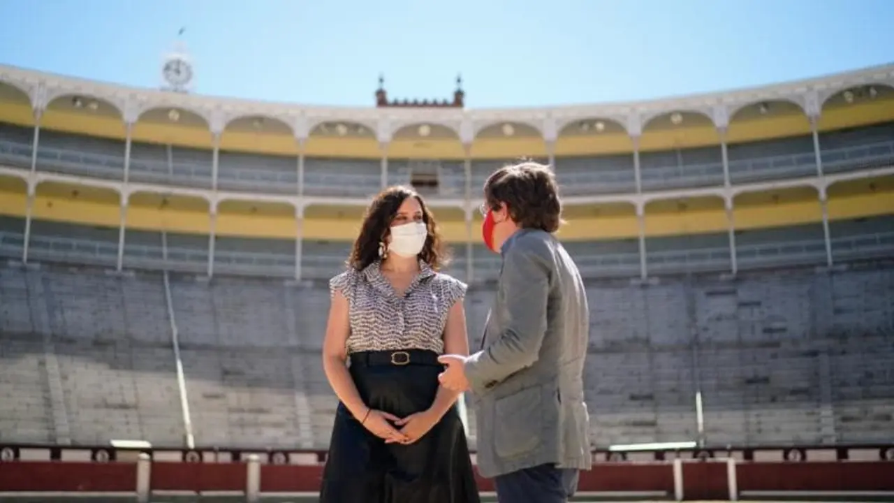 Ayuso firma un protocolo con Almeida para proteger la tauromaquia como patrimonio cultural La presidenta de la Comunidad de Madrid ha defendido los toros como una demostración de libertad. Redacción MiraCorredor 18/07/20