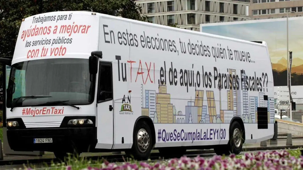 Los taxistas de Madrid piden el voto para Podemos Han fletado un bus que recorre las calles de Madrid y han colocado publicidad gratuita en sus coches. Redacción MiraCorredor 25/04/19
