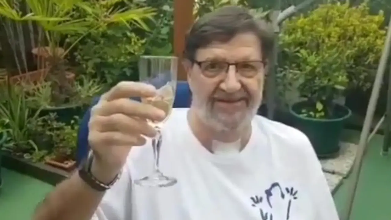 Julio brinda desde casa tras 57 días en la UCI de Torrejón de Ardoz El viernes recibió el alta tras salir de la UCI semanas antes donde ingresó el 27 de febrero. Redacción MiraCorredor 10/05/20