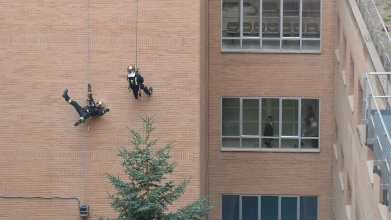 Los Bomberos sorprenden a los niños ingresados en el Hospital de Alcalá de Henares descendiendo desde la azotea Tradicional visita de los Bomberos cargados de regalos para los niños ingresados en el hospital. Redacción MiraCorredor 19/12/22