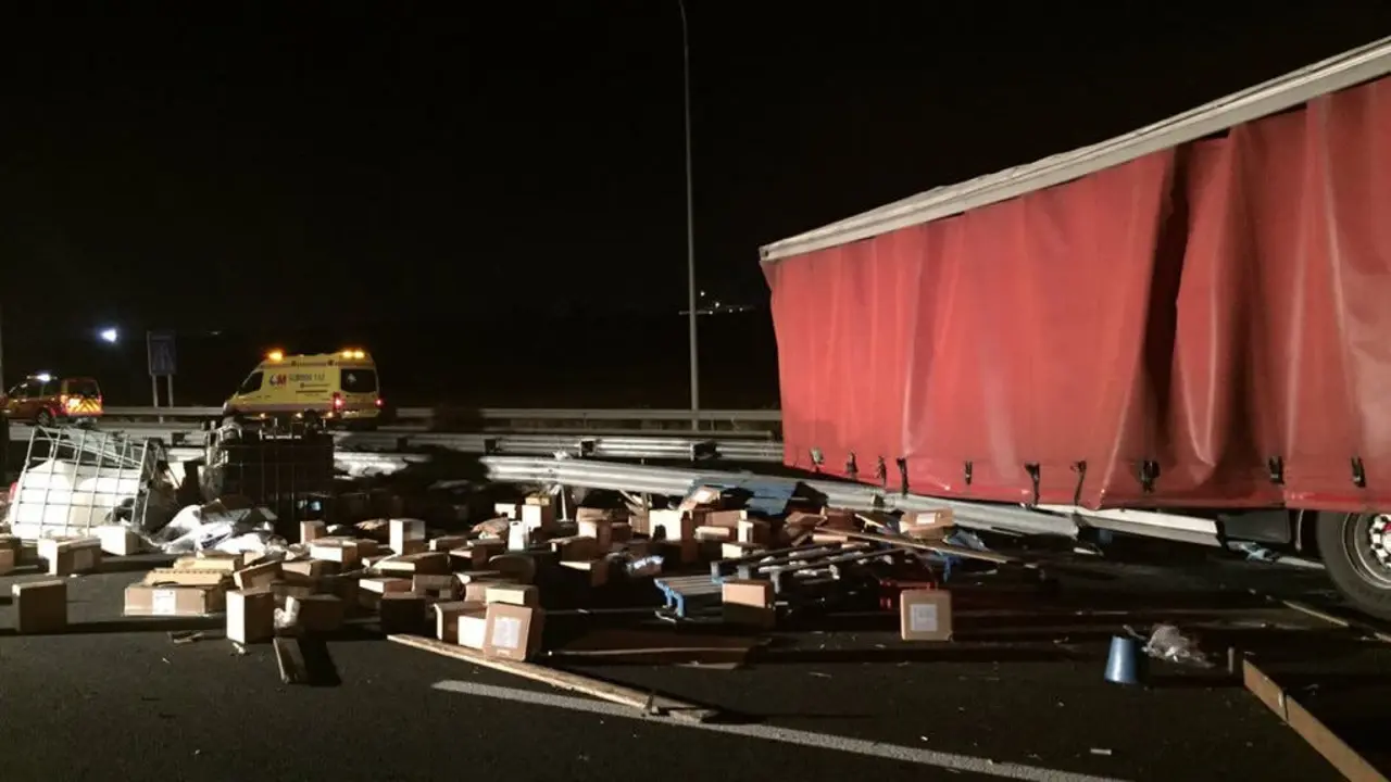 Un camión esparce su carga en la M-45 (San Fernando) tras colisionar contra un turismo Aparatoso y espectacular accidente de tráfico en la M-45, a la altura de San Fernando de Henares, entre un tráiler y un turismo que, afortunadamente,… Redacción MiraCorredor 05/07/16