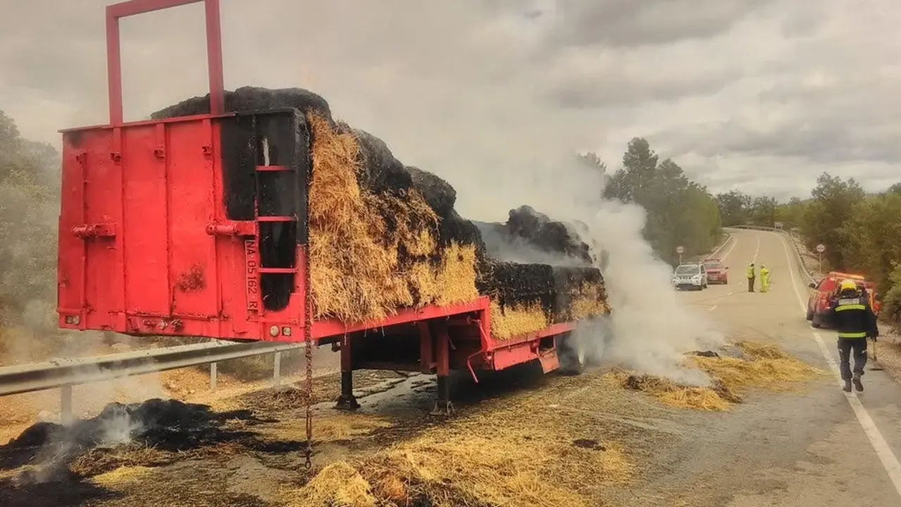 Aparatoso incendio de un camión cargado de paja en Guadalajara La carretera permanece cortada a su paso por la localidad de Durón. Redacción MiraCorredor 15/09/16