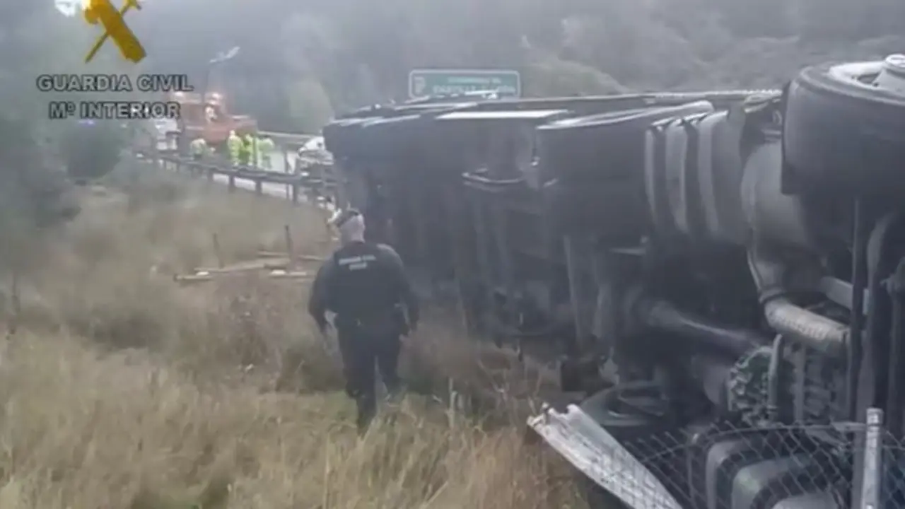 Encuentran 20 kilos de cocaína entre la carga de un camión que ha volcado en la A-1 El copiloto ha sido detenido y el conductor ha huido tras el accidente. Redacción MiraCorredor 09/10/24