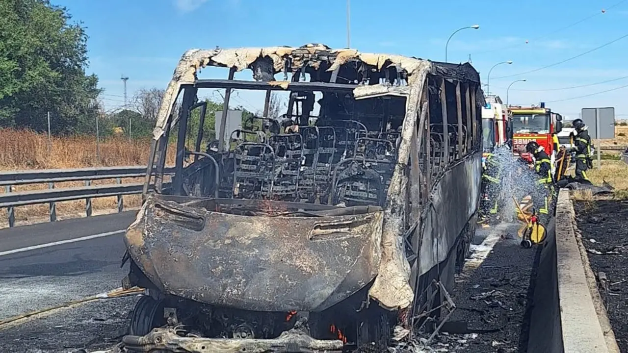Un minibús sin pasajeros sale ardiendo en la A-4 El incendio ha provocado importantes retenciones en la autovía. Redacción MiraCorredor 16/09/24