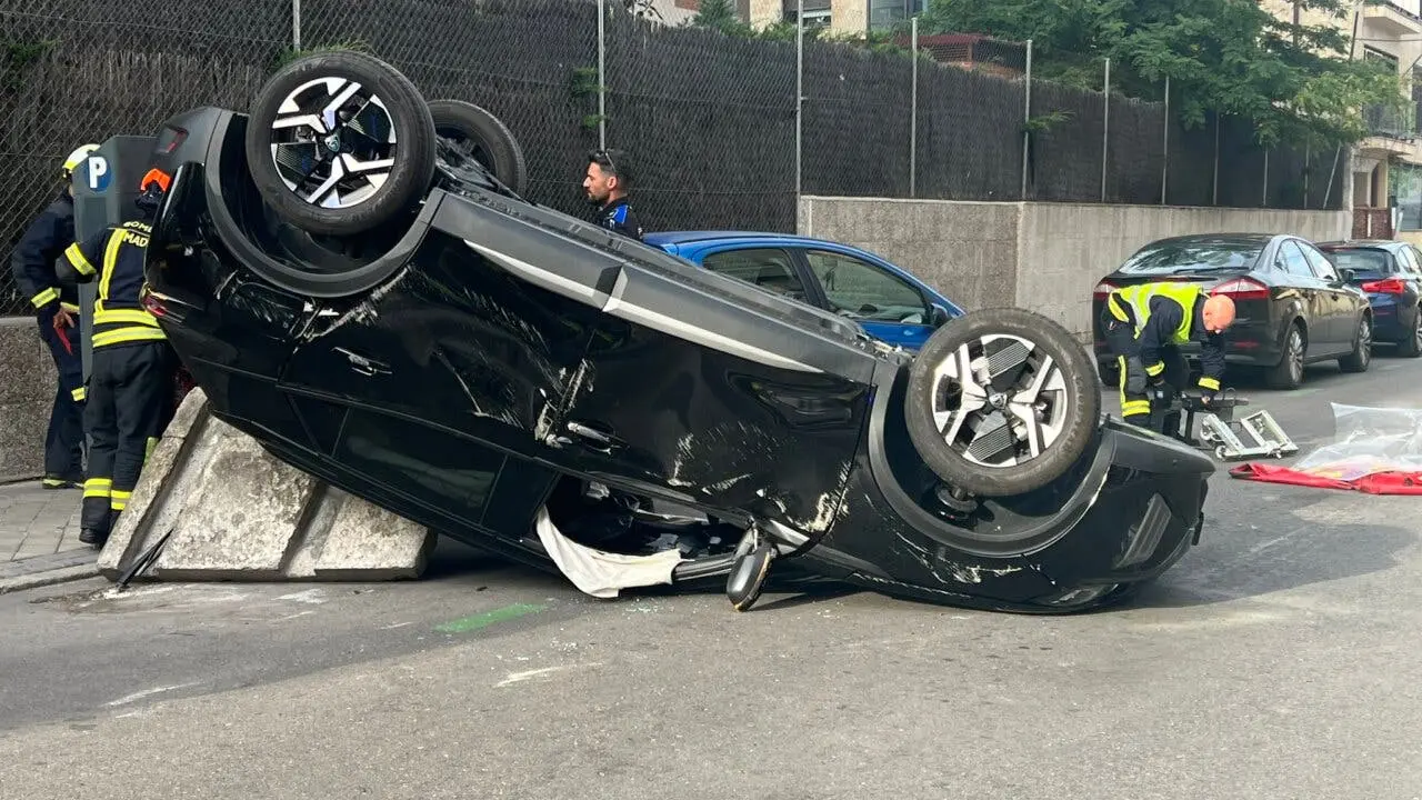 Herido el conductor de un coche tras chocar con otro y volcar en plena calle en Madrid Los Bomberos tuvieron que rescatar del interior del vehículo volcado a su único ocupante. Redacción MiraCorredor 27/05/24