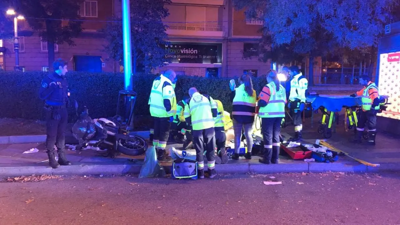 En estado grave un motorista tras sufrir un accidente esta madrugada en Madrid En la Glorieta de Emilio Castelar de la capital. Redacción MiraCorredor 19/11/23