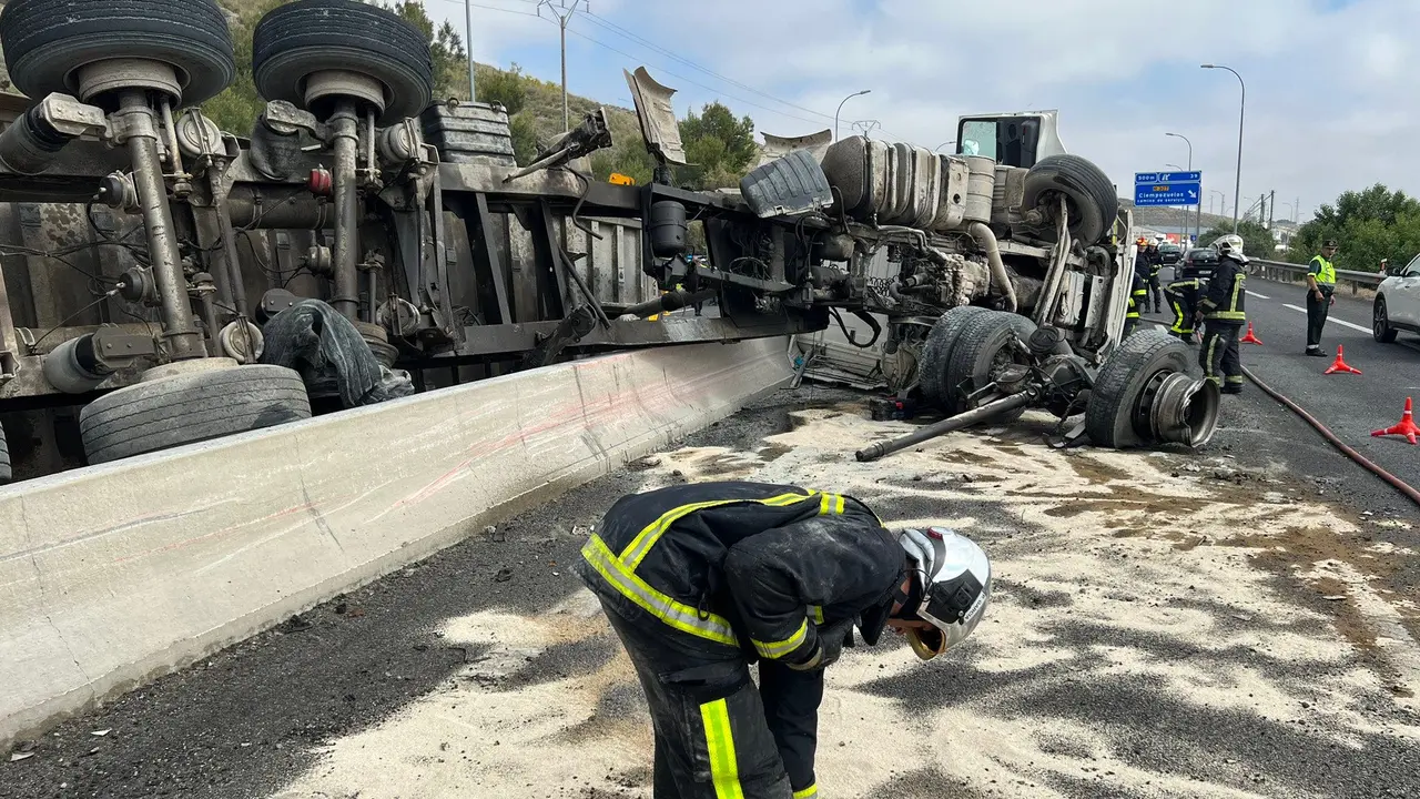 Cuatro heridos por el vuelco de dos camiones en la A-4 y en la M-50 Uno cargado de grava y otro de basura. Redacción MiraCorredor 31/05/23