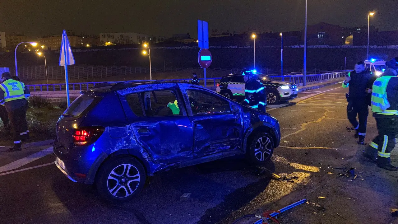 Un herido en una colisión entre dos turismos en una rotonda en Madrid Uno de los vehículos implicados quedó volcado. Redacción MiraCorredor 08/01/23