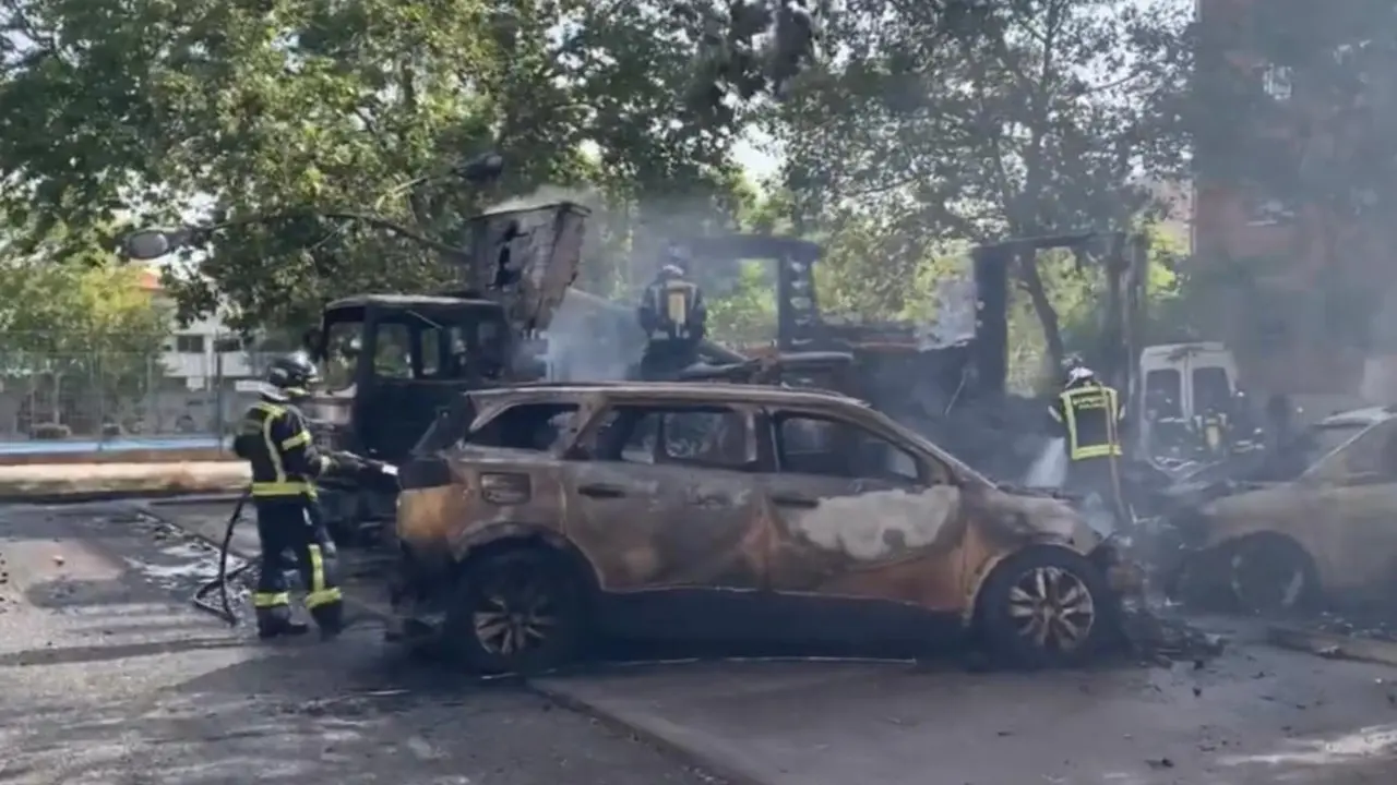 Arden varios vehículos aparcados en una calle de Carabanchel El fuego, cuyas causas investiga la Policía Nacional, no ha causado heridos. Redacción MiraCorredor 05/10/22