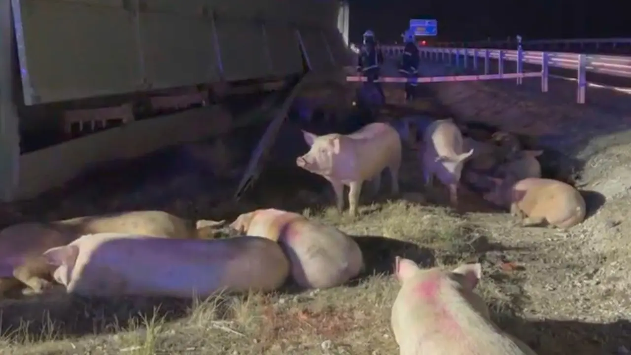 Muere el conductor de un camión que transportaba cerdos al volcar en la A-3 A la altura de Fuentidueña de Tajo. Redacción MiraCorredor 19/12/21