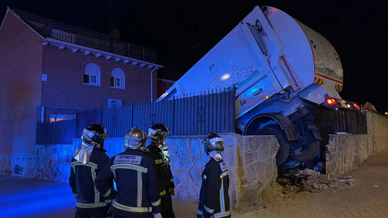 Un camión de la basura se empotra contra una vivienda en Parla La cabina del vehículo acabó sumergida en la piscina y su conductor resultó ileso. Redacción MiraCorredor 08/10/21