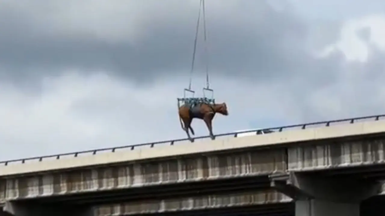 Rescatan en helicóptero a una vaca que llevaba perdida desde el sábado en El Molar El animal se había caído por un terraplén y se encontraba atrapado. Redacción MiraCorredor 15/04/21