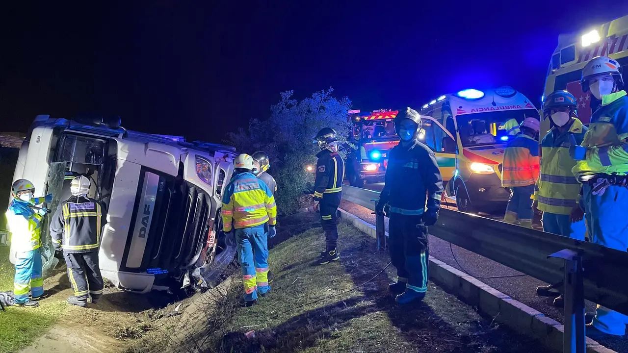 Un camión queda semivolcado en la M-50 tras sufrir el reventón de una rueda El conductor ha resultado ileso aunque ha quedado atrapados en la cabina. Redacción MiraCorredor 06/04/21