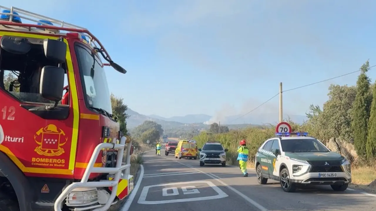 Estabilizado un incendio con tres focos en Zarzalejo tras el desalojo de una urbanización y el corte de la M-532