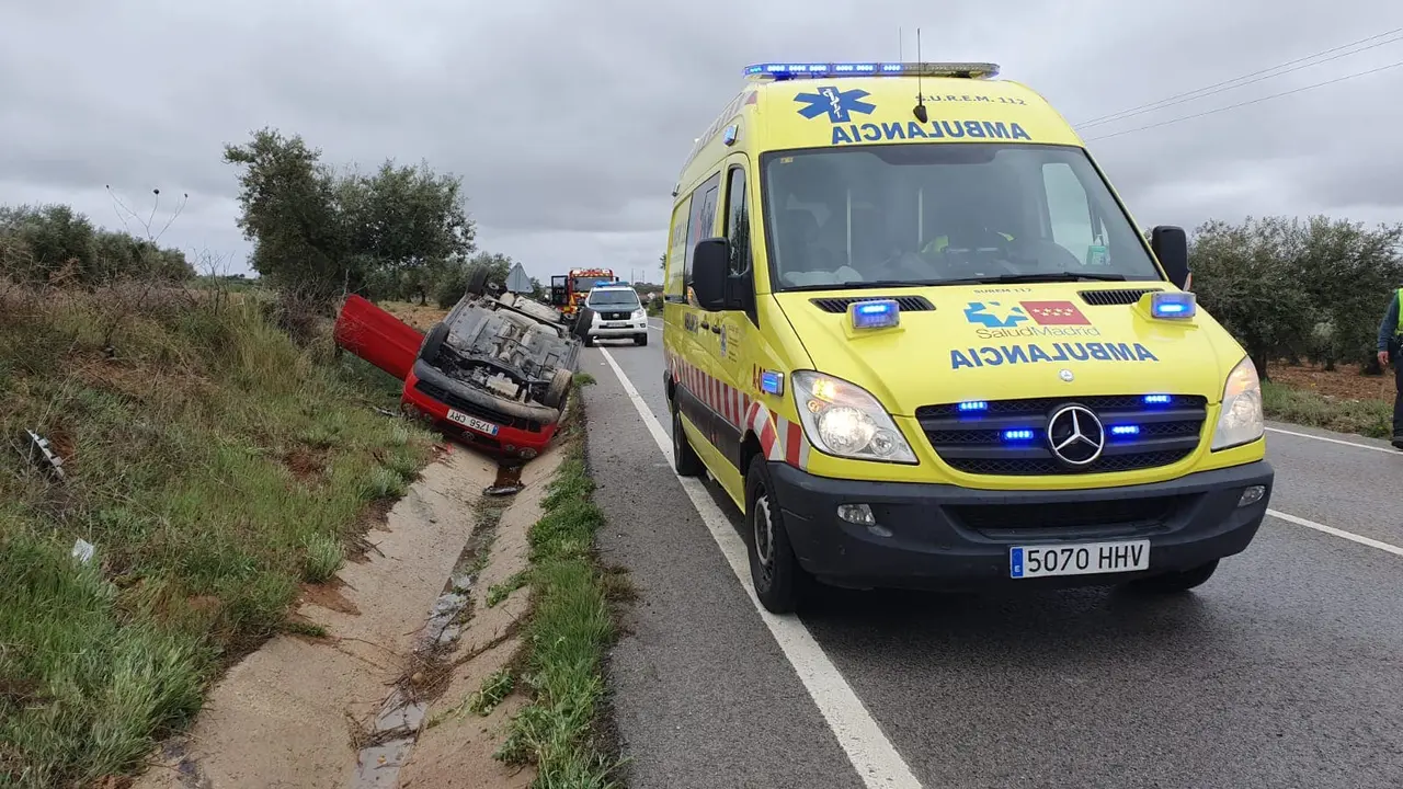 Una joven sale ilesa tras volcar su coche en Campo Real Pudo salir por su propio pie. Redacción MiraCorredor 19/04/19
