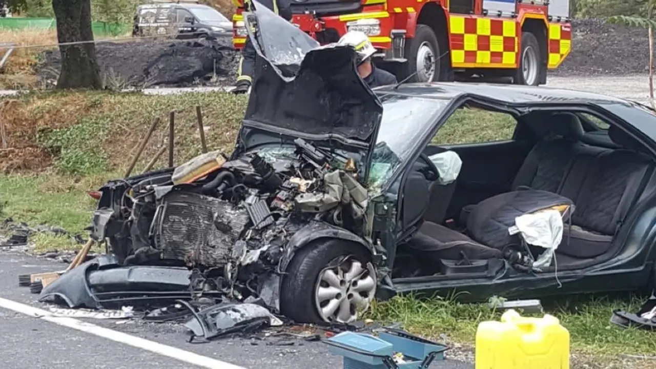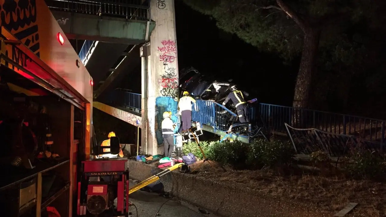 Un coche acaba encajado en la rampa de una pasarela de la A-6 A pesar de lo aparatoso del siniestro, el conductor no resultó herido de gravedad. Redacción MiraCorredor 13/10/18