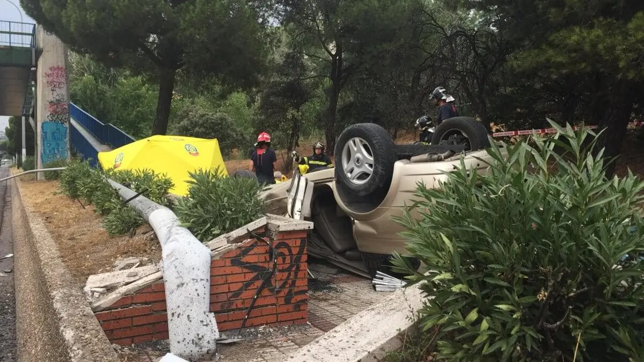 En estado crítico un hombre al volcar su coche en la A-6 La Policía Municipal de Madrid investiga las causas del siniestro. Redacción MiraCorredor 09/09/18