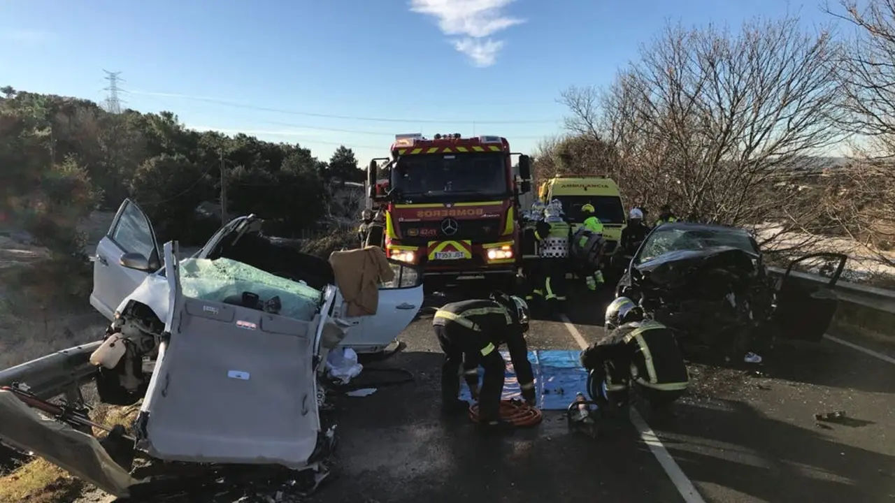 Cuatro heridos, uno muy grave, en un brutal accidente en la M-601 El choque entre dos vehículos fue tan violento que uno de ellos quedó encima del quitamiedos de la carretera. Redacción MiraCorredor 16/01/18
