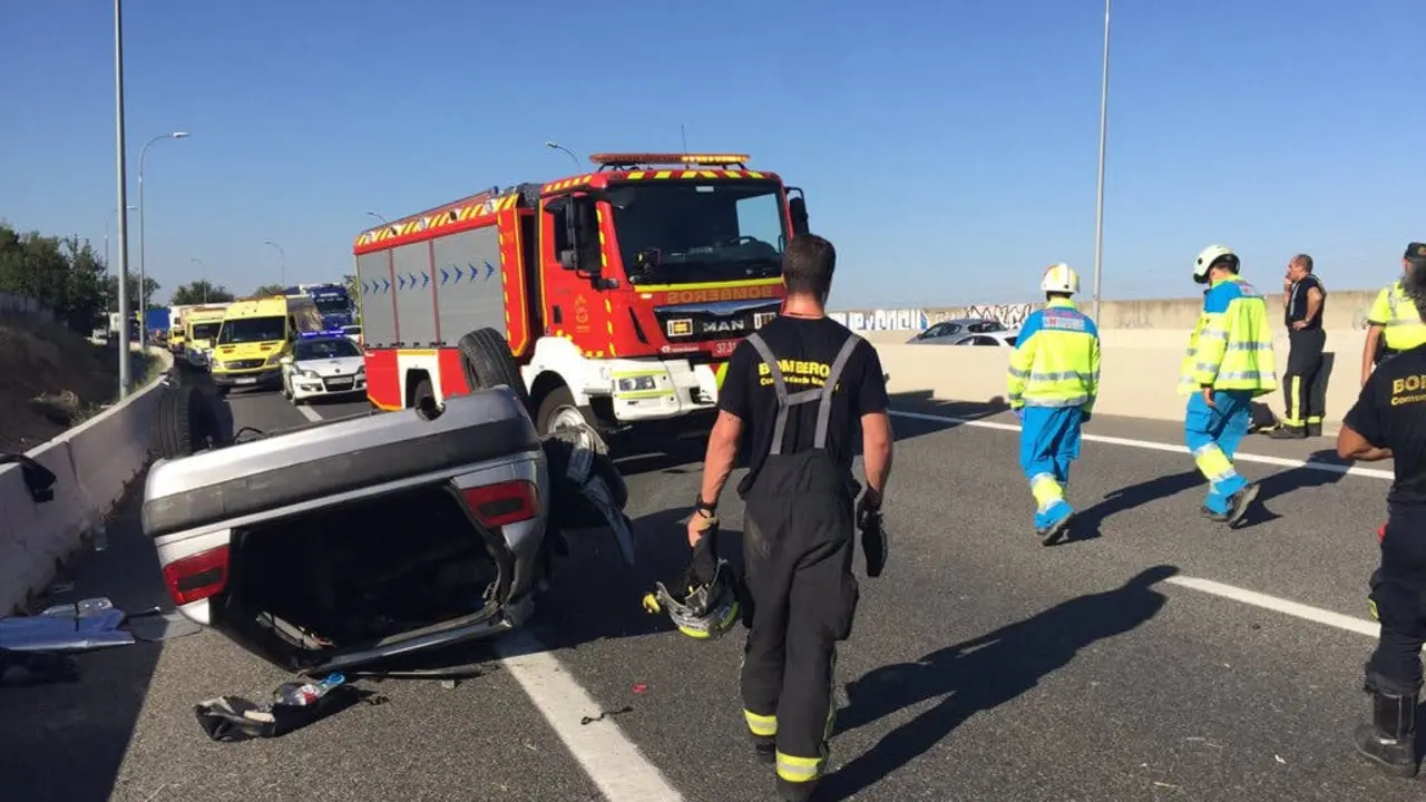 Queda atrapado entre los hierros de su coche tras volcar en la A-4 En principio solo sufrió policontusiones. Redacción MiraCorredor 06/09/17