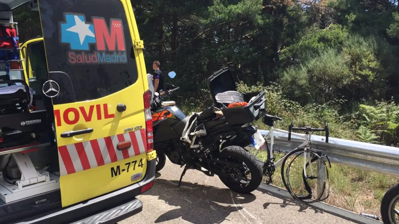 Muere un ciclista de 42 años tras chocar contra una moto en Madrid El ciclista ha salido despedido y ha chocado contra el quitamiedos. Redacción MiraCorredor 23/07/17