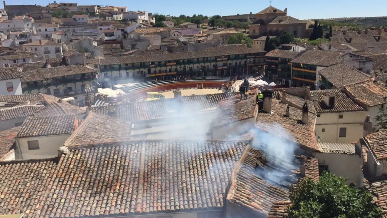 Incendio en la famosa Plaza Mayor de Chinchón El fuego ha generado una gran columna de humo. Redacción MiraCorredor 25/07/17