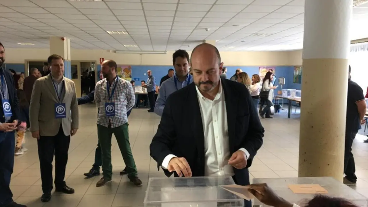 Pedro Rollán vota junto a Ignacio Vázquez en el colegio Beethoven de Torrejón Ambos dirigentes han destacado la ausencia de incidentes y han hecho un llamamiento a la participación. Redacción MiraCorredor 28/04/19